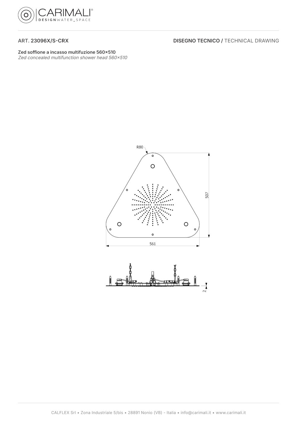 The triangle, although unusual for a traditional function, is Carimali’s new offering that expands the range of multifunctional showerheads.